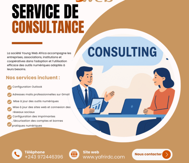 Young Web Africa, SARL YAFRI, implanté en République Démocratique du Congo, est spécialisé dans la création des sites web et le développement des applications web et mobile. Dans ce cadre, elle s’occupe de l’accompagnement de ses clients dans la création, de leur site web, ainsi que dans le déploiement de leur stratégie marketing.